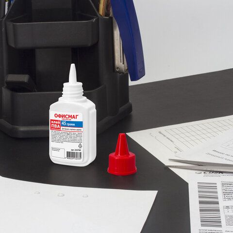 Клей ПВА ОФИСМАГ (бумага, картон, дерево), 40 г, РОССИЯ, 225760