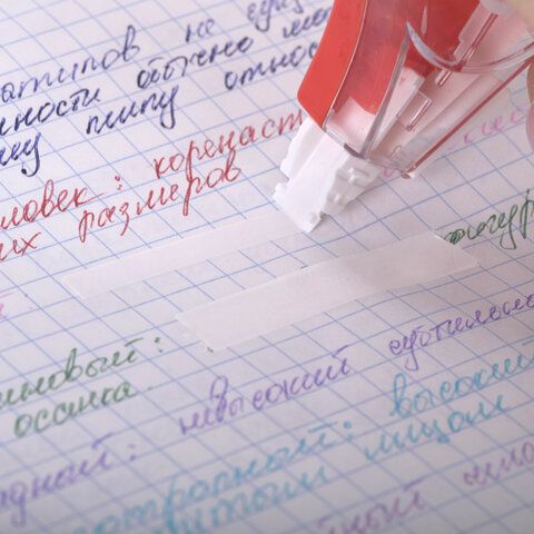 | Корректирующая лента | 4–6 мм*6–12 м | Сухая пленка | Не требуется | Точечные правки, тетради | 120 (Erich Krause, 5 мм*8 м) |