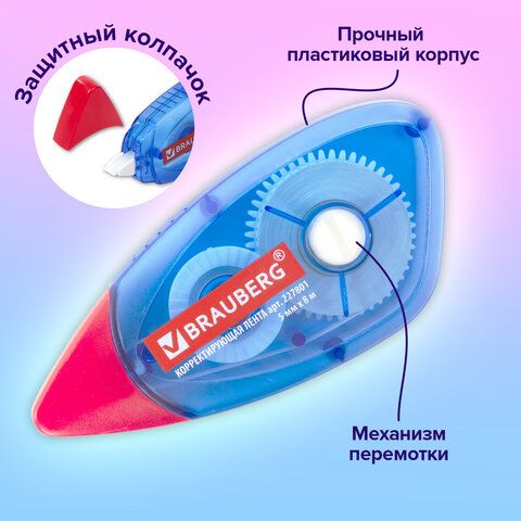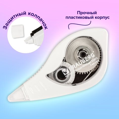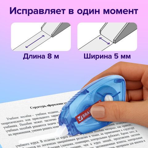 Корректирующая лента 4–6 мм*6–12 м Сухая пленка Не требуется Точечные правки, тетради 120 (Erich Krause, 5 мм*8 м)