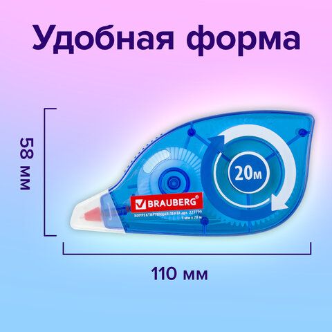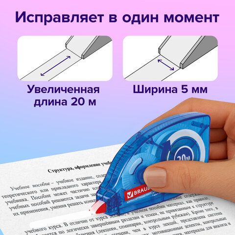 Корректирующая лента — компактное средство в виде ролика, которое наносит тонкую сухую пленку. Подходит для точечных исправлений. Характеристики: