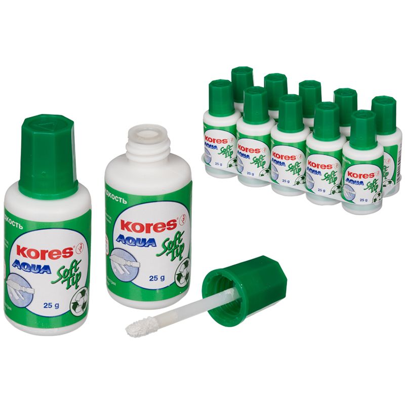 Корректирующая жидкость Kores "Soft Tip Aqua", 25мл, на водной основе, с аппликатором