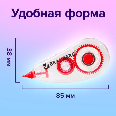 Корректирующая лента механизм: устройства с поворотным или боковым механизмом упрощают нанесение. Пример — Brauberg 5 мм*6 м "Pastel" с поворотным механизмом.