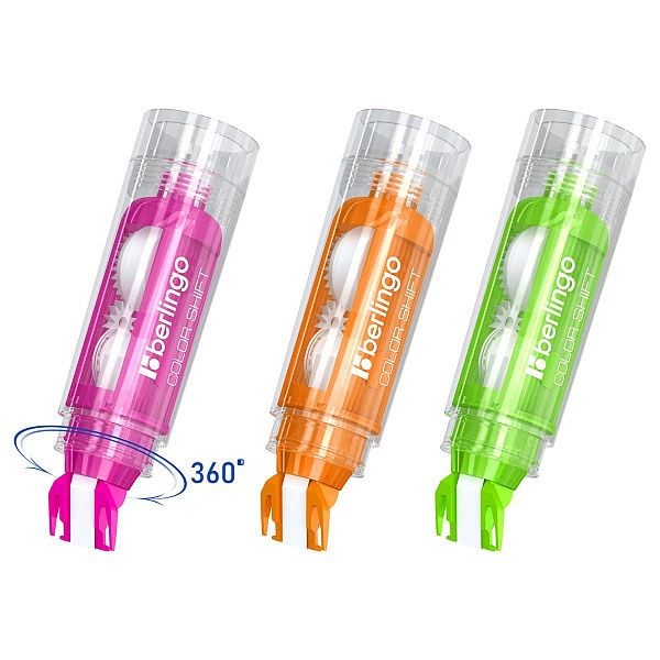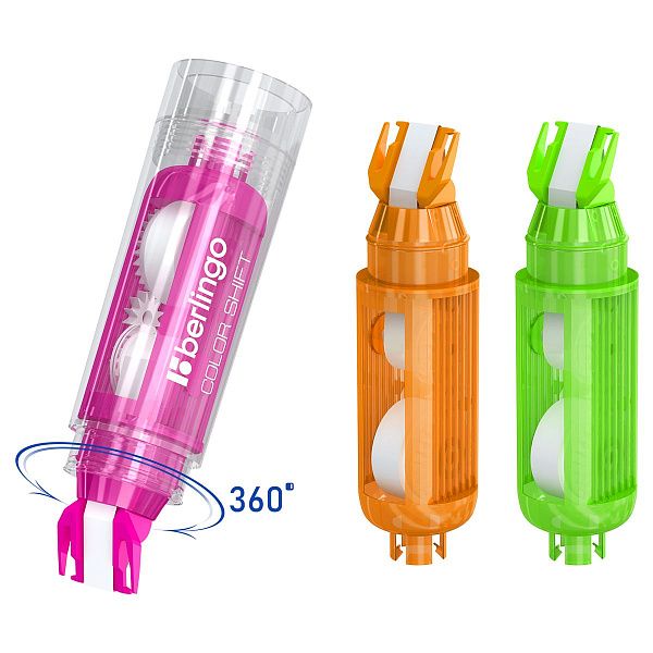 Корректирующая лента механизм: устройства с поворотным или боковым механизмом упрощают нанесение. Пример — Brauberg 5 мм*6 м "Pastel" с поворотным механизмом.