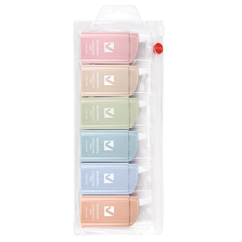 Корректирующая лента BRAUBERG COMPACT PASTEL, 5 мм х 6 м, КОМПЛЕКТ 6 штук, пенал с zip-lock, 272496