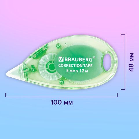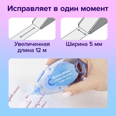Корректирующая лента BRAUBERG PASTEL, 5 мм x 12 м, механизм перемотки, ВЫГОДНАЯ УПАКОВКА 3 штуки в блистере, 271252