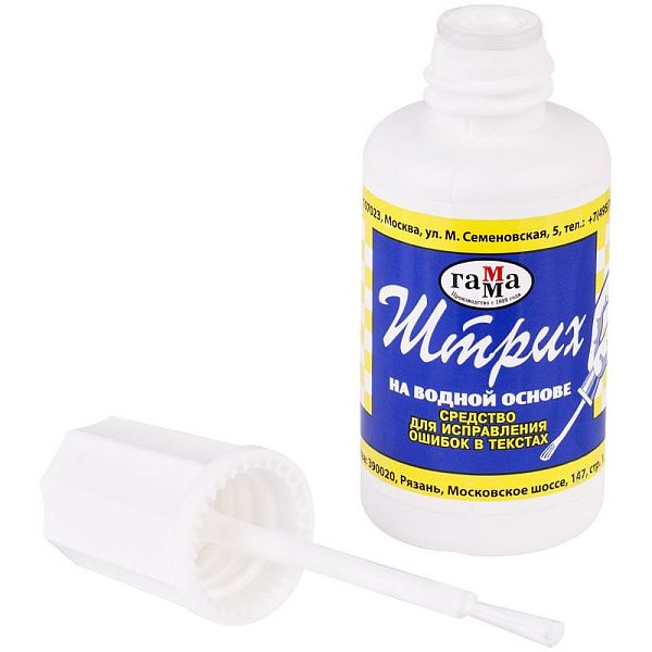 - Объем: обычно 20 мл, например, корректирующая жидкость штрих 20 мл «Школьник» за 40 рублей.