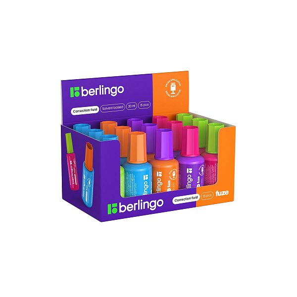 - Объем: от 7 до 20 мл, например, Berlingo корректирующая жидкость 20 мл за 60 рублей.