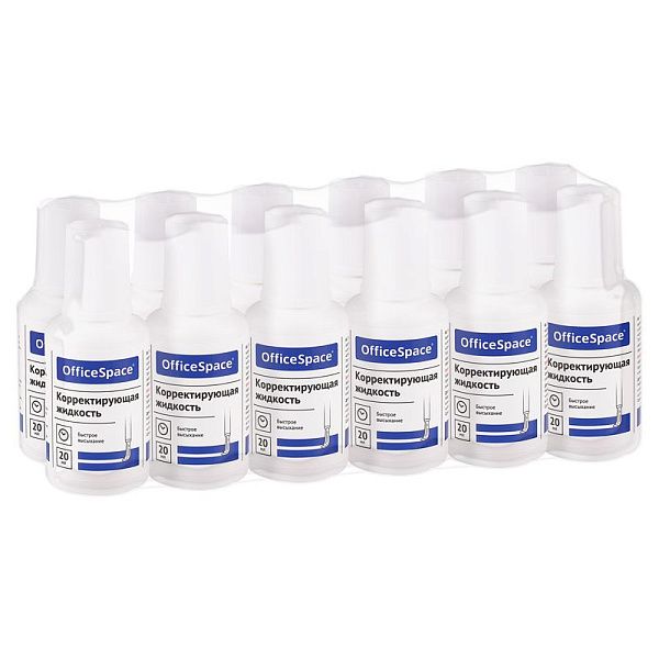 - Корректирующая жидкость 20 мл рассчитана на 100–150 исправлений, что подходит для офисного использования.