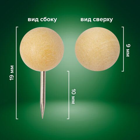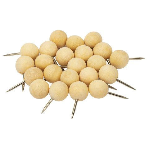 Силовые кнопки-гвоздики BRAUBERG WOOD, деревянные (шарики), 50 штук, 10 мм, 272761