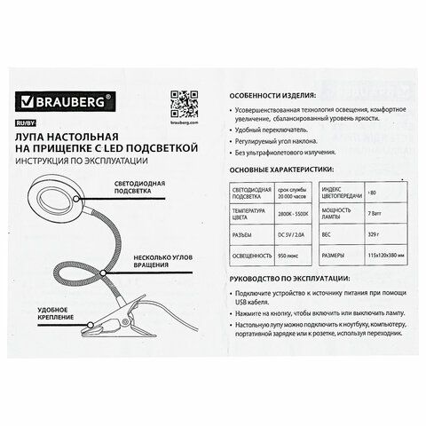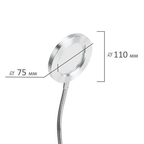 Лупа настольная на прищепке с LED ПОДСВЕТКОЙ, диаметр 75 мм, увеличение 3, BRAUBERG, 455931