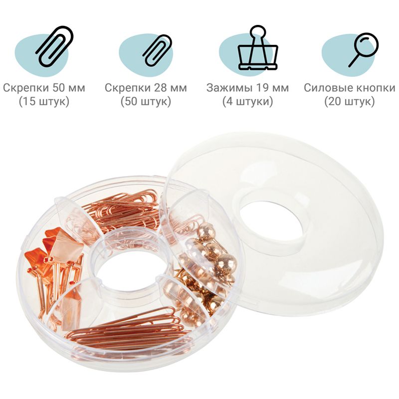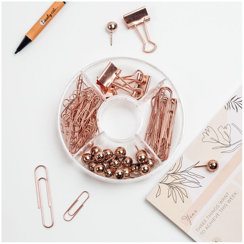 Набор мелкоофисных принадлежностей Meshu "Rose Gold", 89 предметов, розовое золото, пластиковый пенал, европодвес