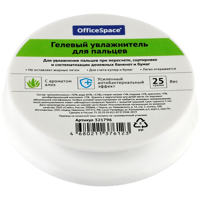 Подушка увлажняющая OfficeSpace, гелевая, 25г, светло-зеленая, с ароматом алоэ