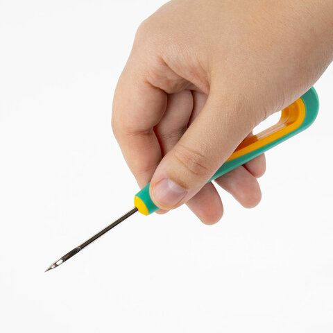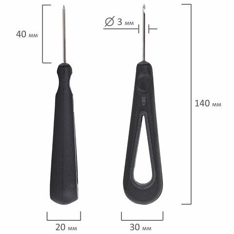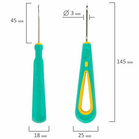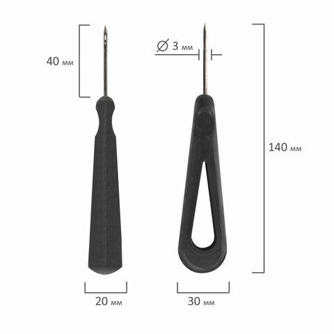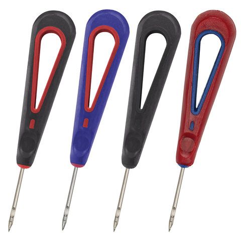 • Шило канцелярское с ушком: с отверстием в стержне для нити, упрощает сшивание.
