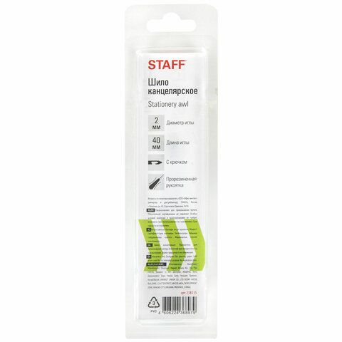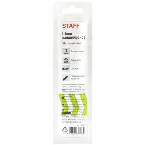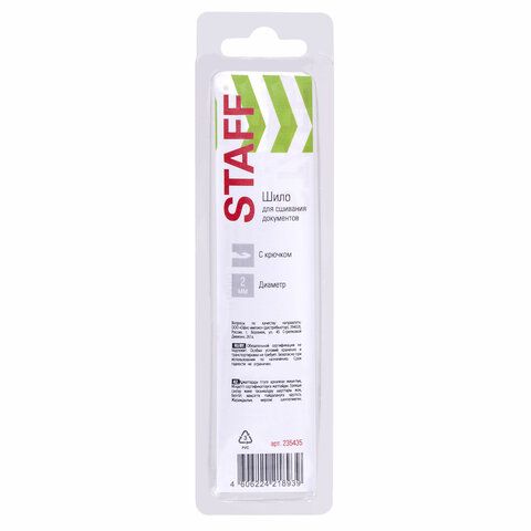 • Шило канцелярское с крючком: для захвата и протягивания нити, например, шило STAFF с крючком диаметром 2 мм.