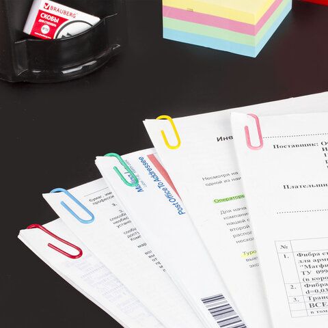 - Для декоративных целей или сортировки используйте декоративные скрепки, например, Berlingo 28 мм, цветные.