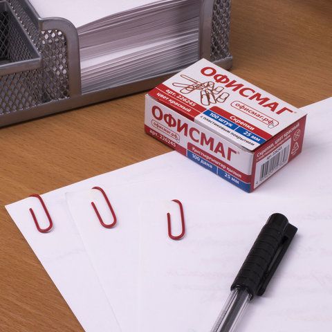 - Упаковка скрепок: от 50 до 100 шт., например, скрепки упаковка OfficeSpace 28 мм (100 шт.).