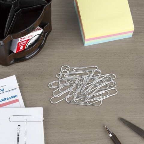 - Для больших пачек (15–30 листов) выбирайте скрепки большие канцелярские 33–50 мм, например, Brauberg 33 мм.