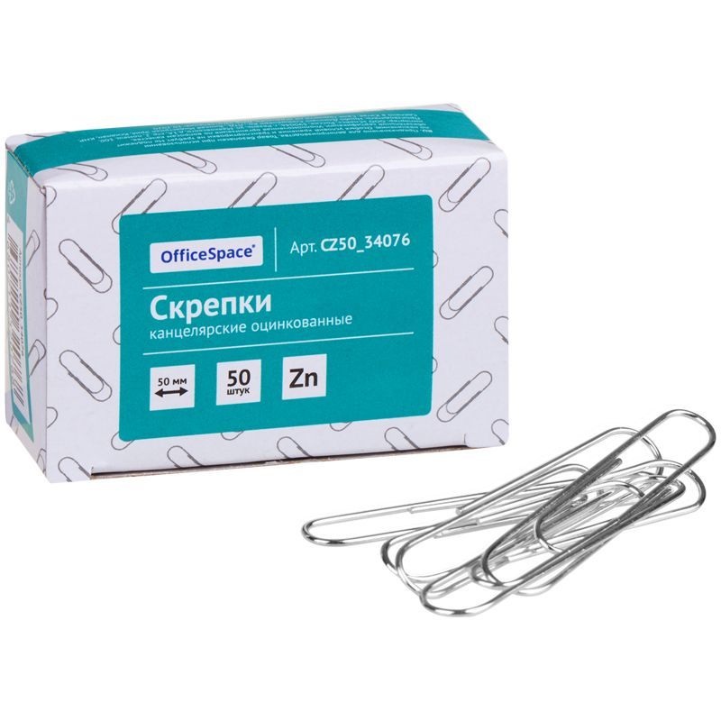 Скрепки 50мм, OfficeSpace, 50шт., оцинкованные, карт. упаковка