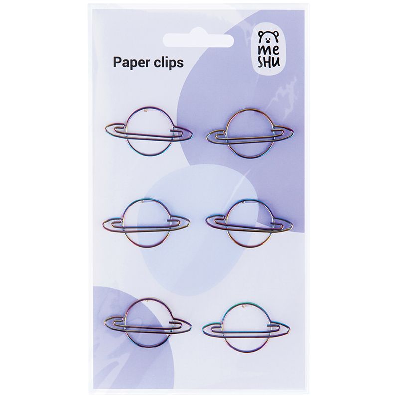 Скрепки фигурные 23мм, Meshu "Planets", 6шт., пакет с европодвесом