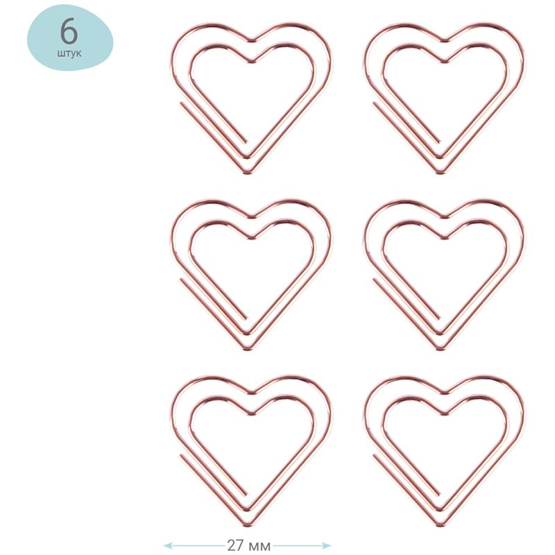 Скрепки фигурные 27мм, Meshu "Hearts", 6шт., пакет с европодвесом