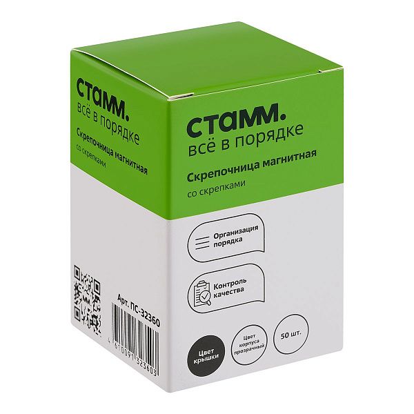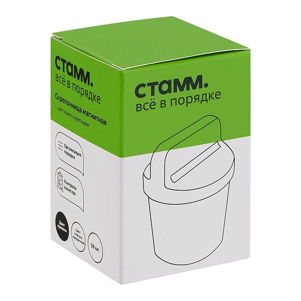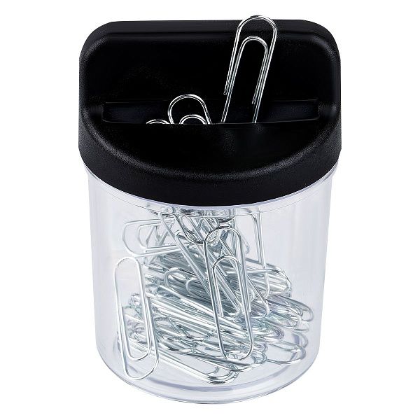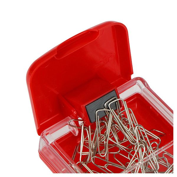 Магнитная скрепочница — это небольшой контейнер, обычно пластиковый, с магнитным кольцом или основанием, которое удерживает скрепки на месте. Она может быть открытой или с крышкой, круглой или прямоугольной. Скрепочницы часто поставляются с набором скрепок, что делает их готовым решением для работы с документами.