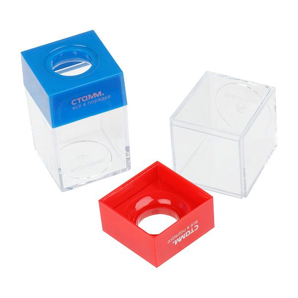 - Скрепочница магнитная круглая открытая цвет ассорти: яркие цвета (синий, зеленый, розовый) для визуального разнообразия.