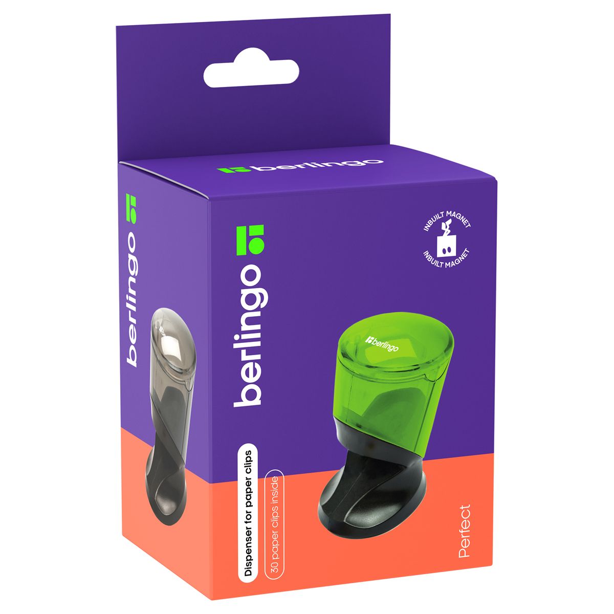 Скрепочница магнитная Berlingo "Perfect", со скрепками 30шт., цвет ассорти, картонная коробка, европодвес