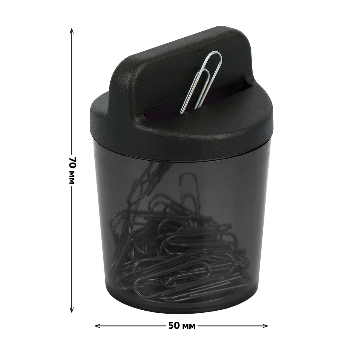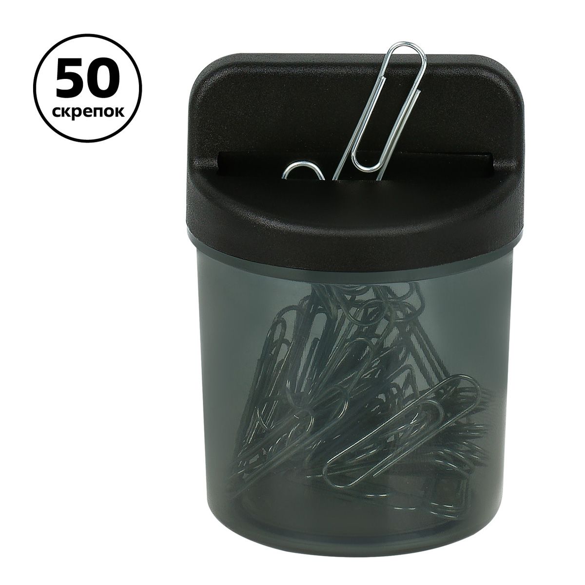 Скрепочница магнитная СТАММ, 50 скрепок, тонированная черная
