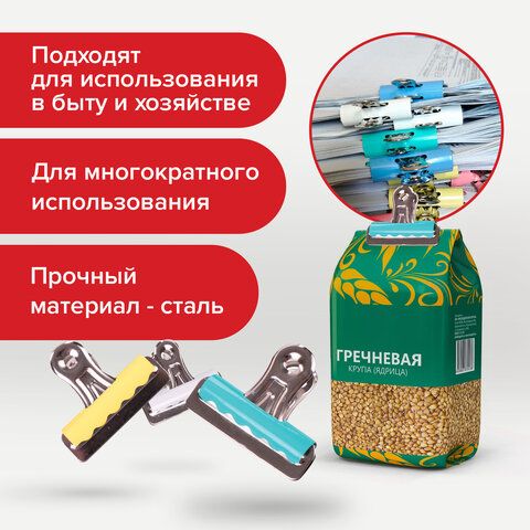 Зажимы-бульдоги для бумаг большие BRAUBERG, КОМПЛЕКТ 10 шт., 57 мм, на 90 листов, картонная коробка, 223514