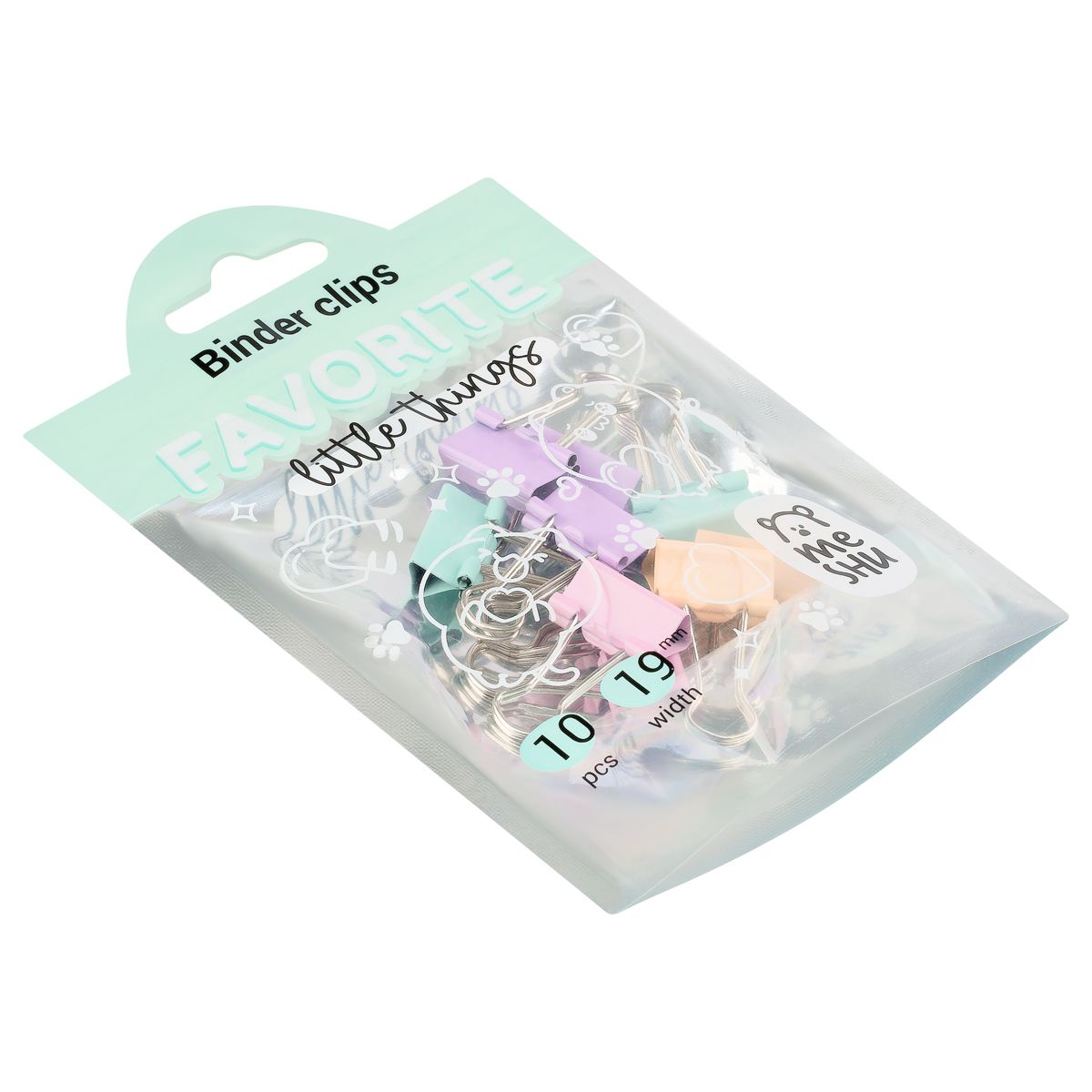Зажимы для бумаг 19мм, MESHU "Pastel", 10шт., ассорти, пакет с замком зип лок, европодвес