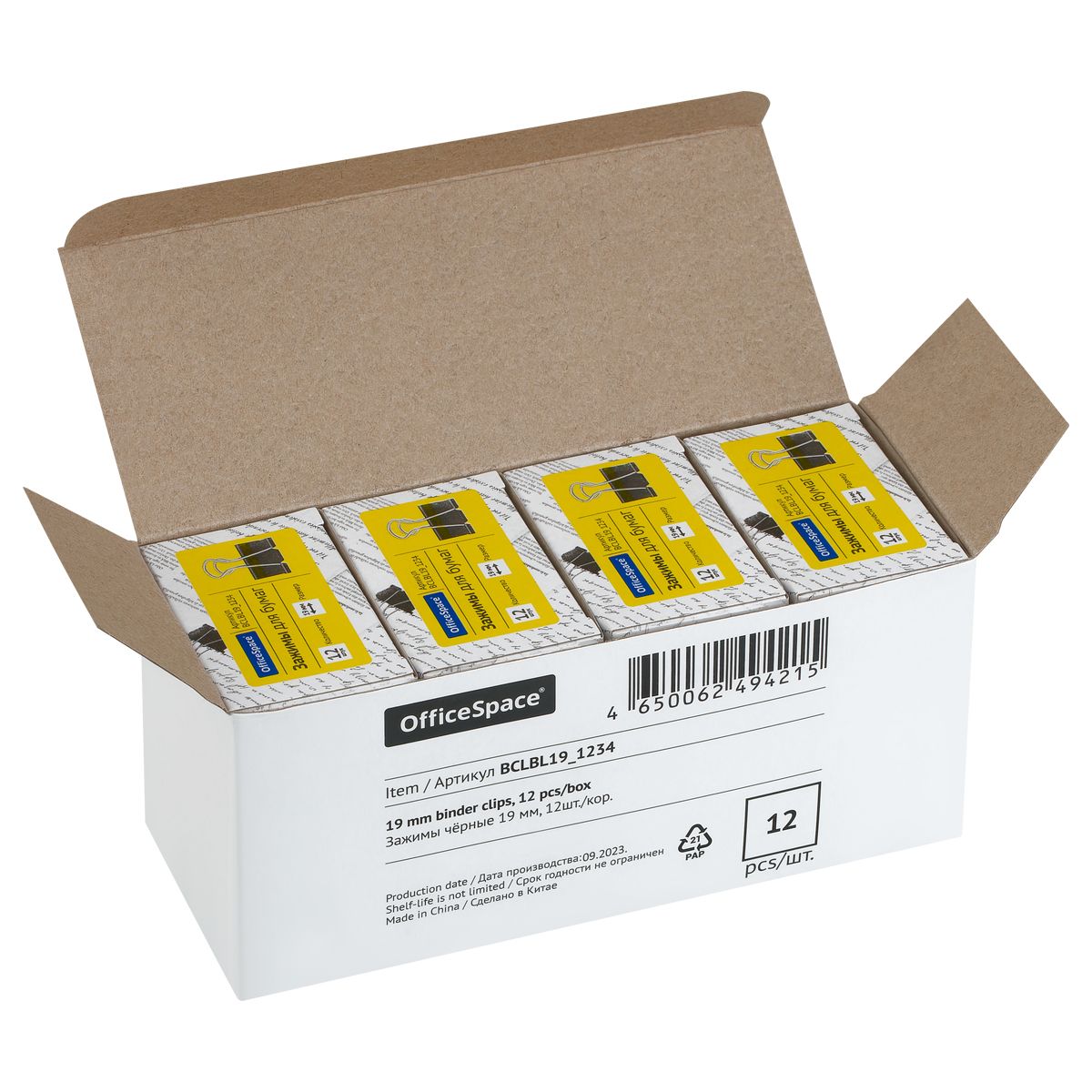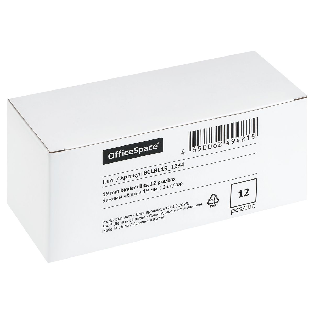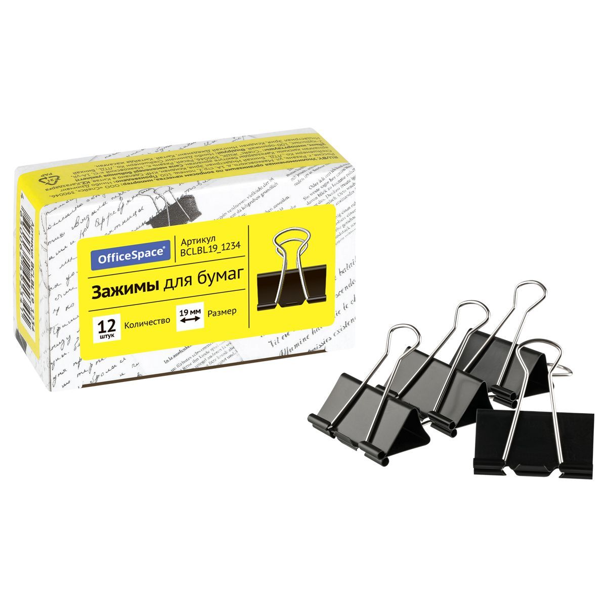 Зажимы для бумаг 19мм, OfficeSpace, 12шт., черные, картонная коробка