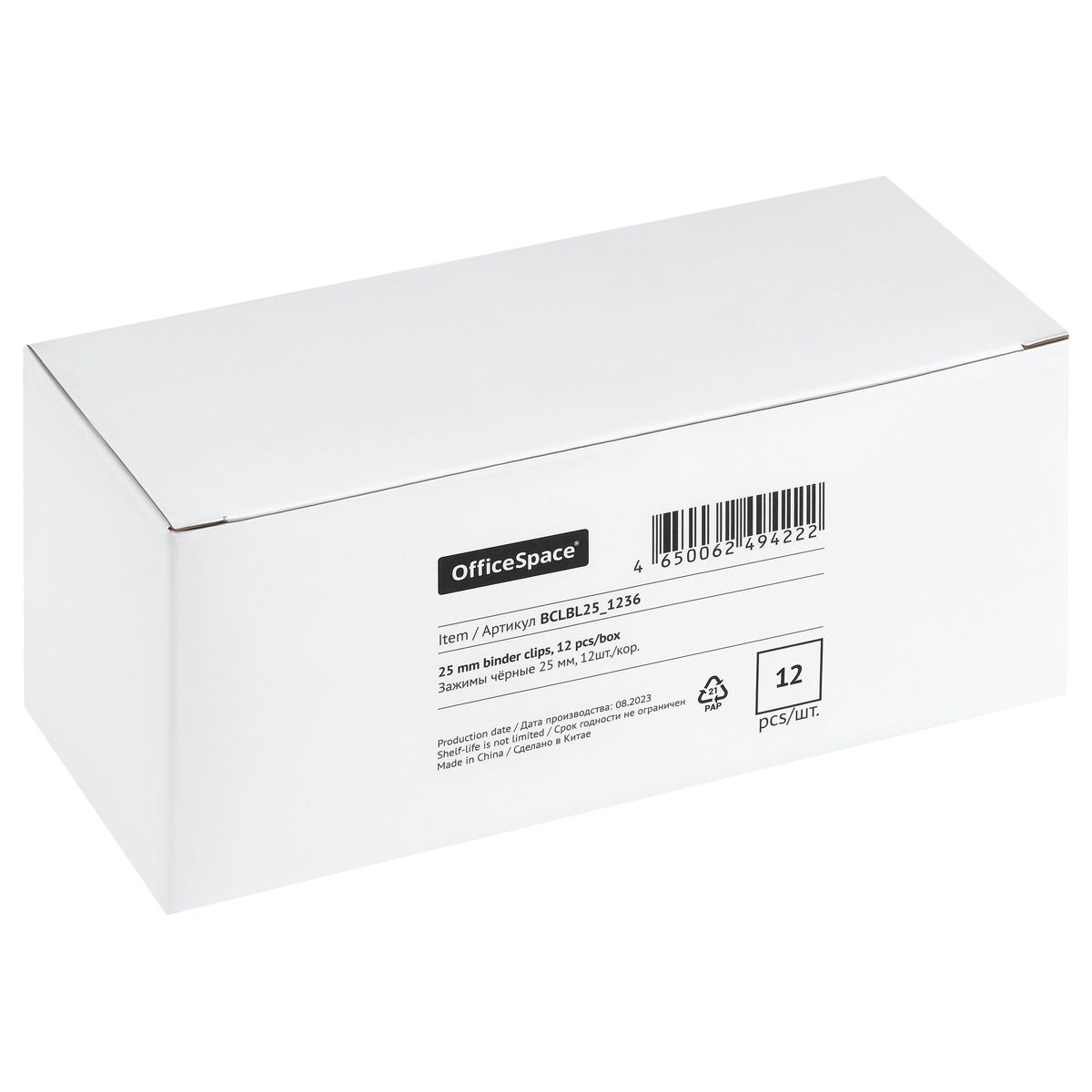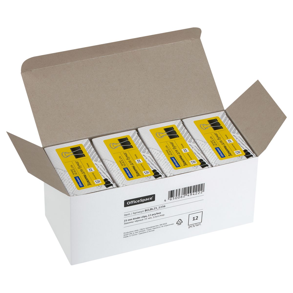 Зажимы для бумаг 25мм, OfficeSpace, 12шт., черные, картонная коробка