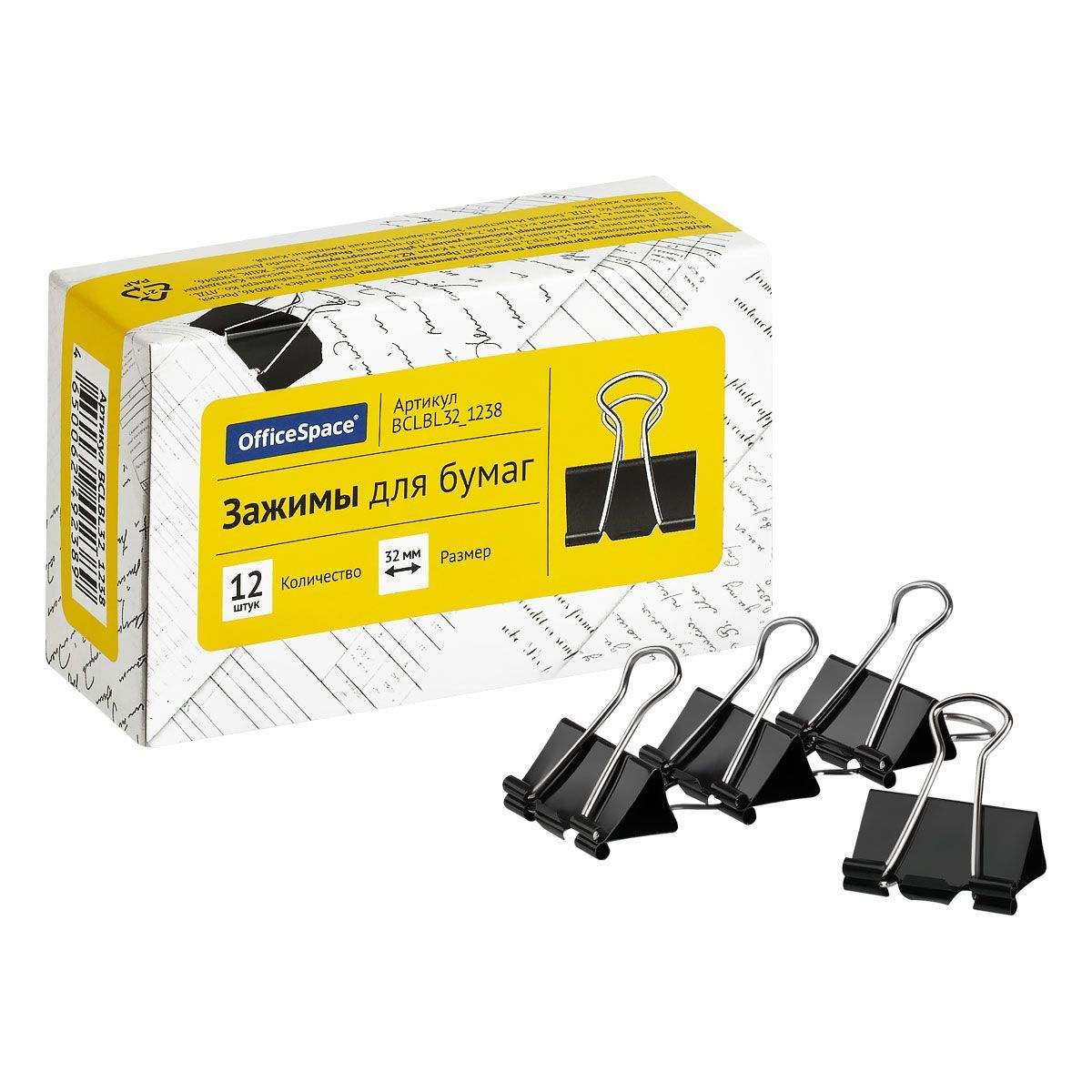Зажимы для бумаг 32мм, OfficeSpace, 12шт., черные, картонная коробка