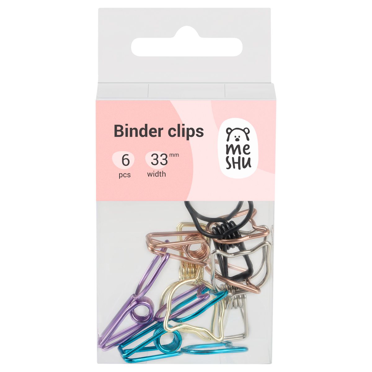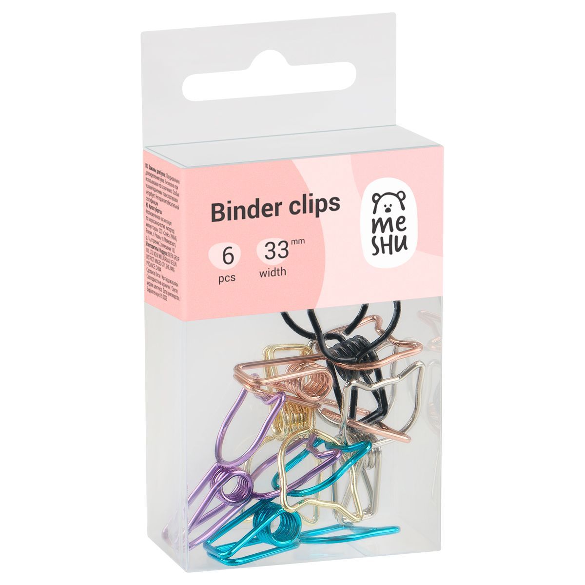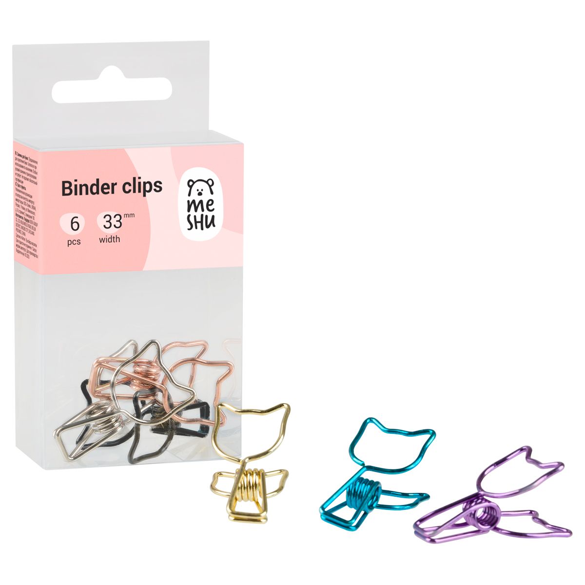 Зажимы для бумаг 33мм, MESHU "Grace Cats", 6шт., ассорти, бокс с европодвесом