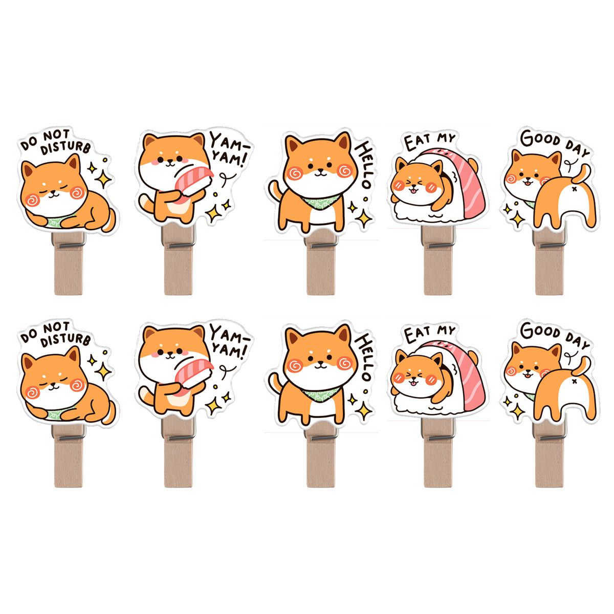 Зажимы для бумаг 7мм, MESHU "Funny dogs", 10шт., деревянные, ассорти, опп пакет с европодвесом, веревка в комплекте