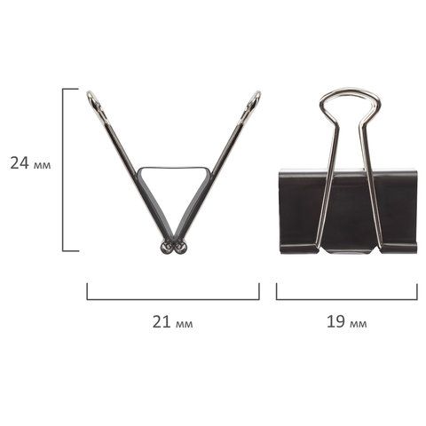 Зажимы для бумаг STAFF "EVERYDAY", КОМПЛЕКТ 12 шт., 19 мм, на 60 листов, черные, картонная коробка, 224606