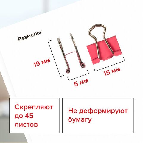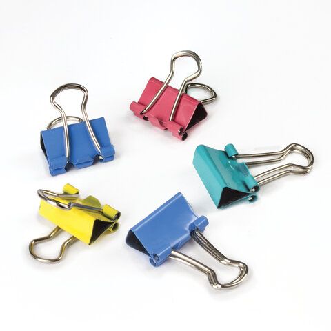 Зажимы для бумаг STAFF "Profit", КОМПЛЕКТ 12 шт., 15 мм, на 45 листов, цветные, картонная коробка, 229050
