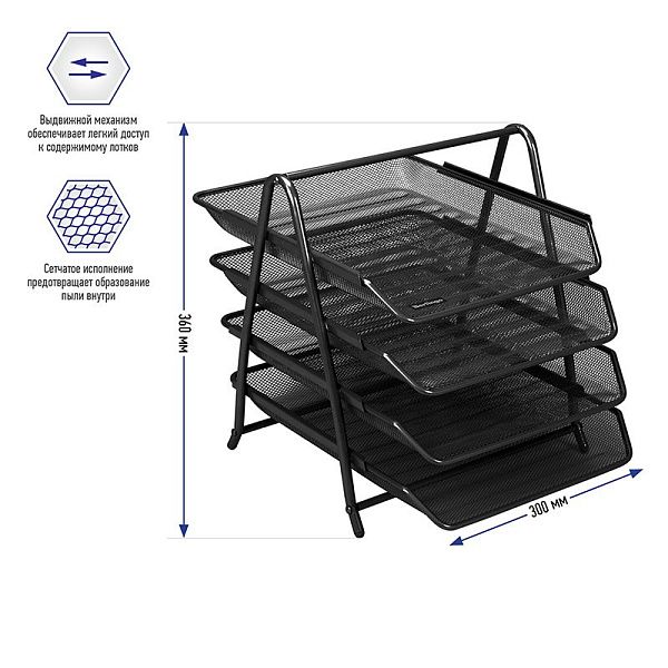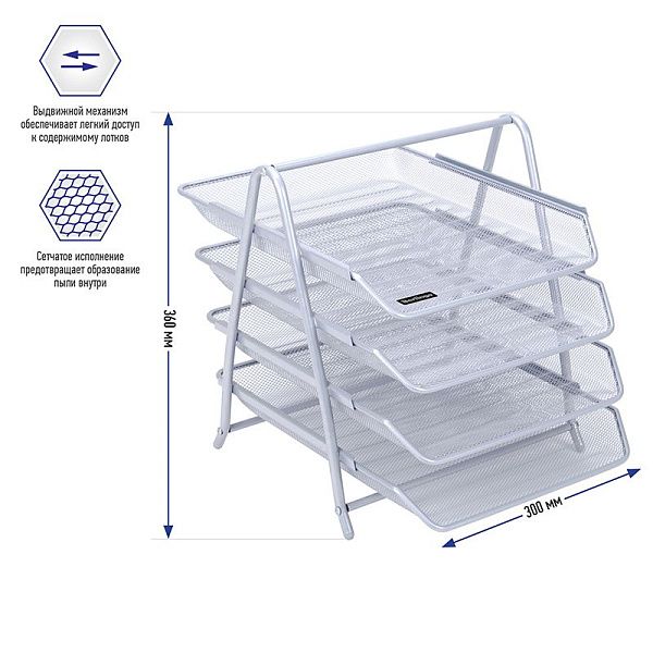- Большие лотки вмещают формат А4 и выше — удобны для ежедневной работы с документами.