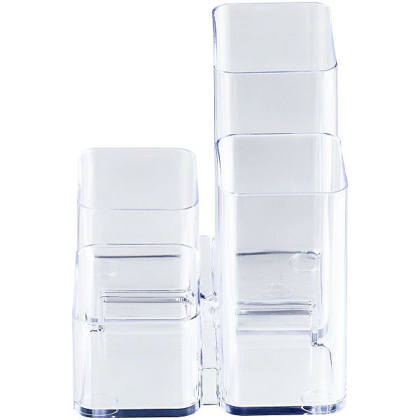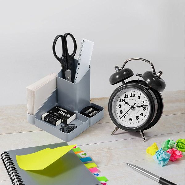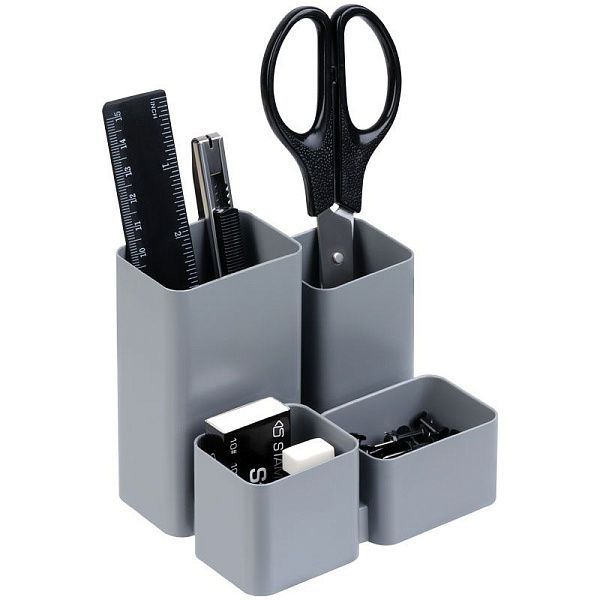 - Настольные наборы с несколькими ячейками подходят для хранения канцелярии, скрепок, флешек и других мелочей.