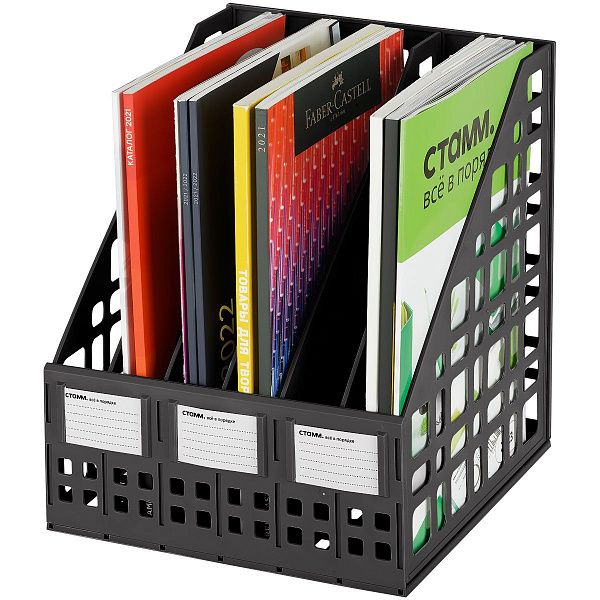 - Вертикальный лоток "СТАММ Фаворит" (90 мм) позволяет быстро находить нужные бумаги, разделяя их по категориям или приоритетам.