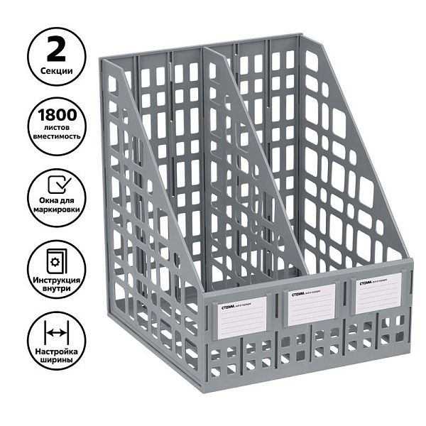 • Вертикальный лоток "СТАММ Фаворит" (90 мм) позволяет быстро находить нужные бумаги, разделяя их по категориям или приоритетам.