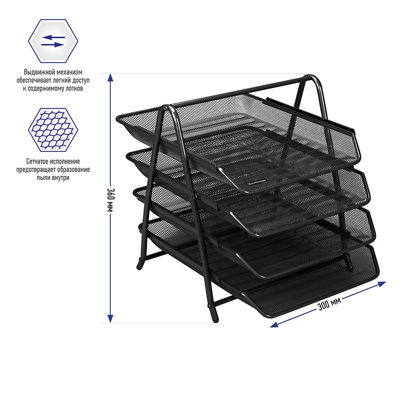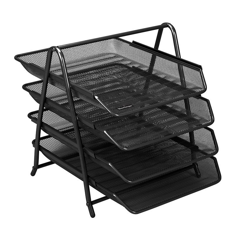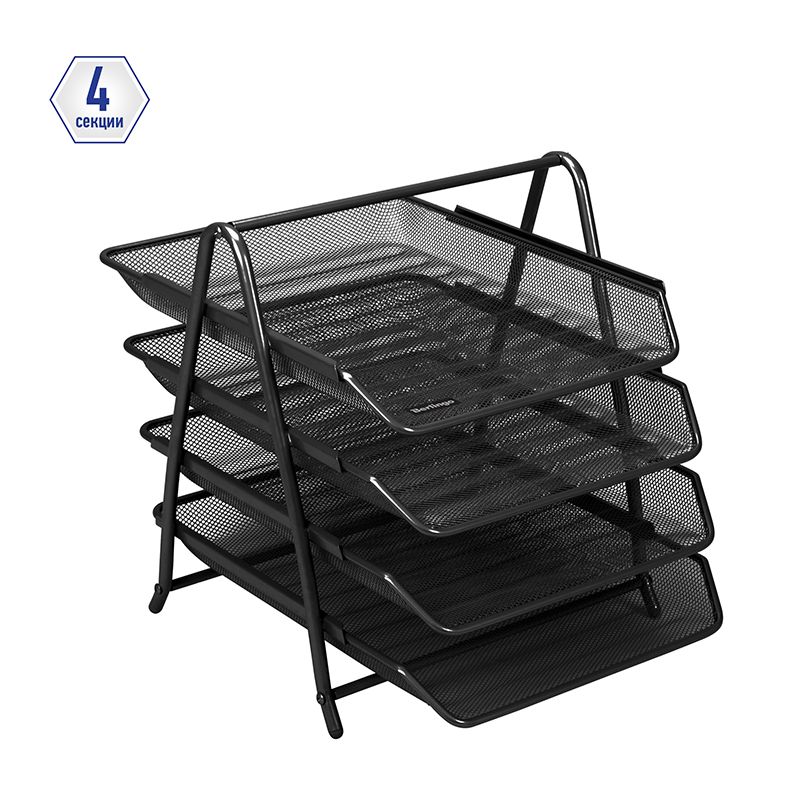 Лоток для бумаг горизонтальный Berlingo "Steel&Style", 4 секции, металл, черный
