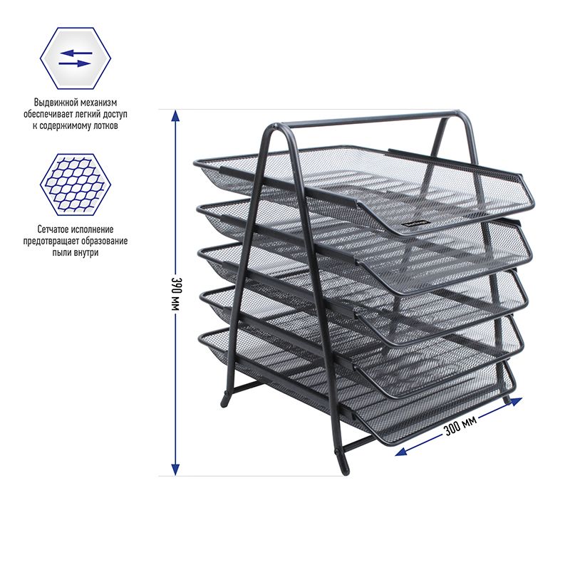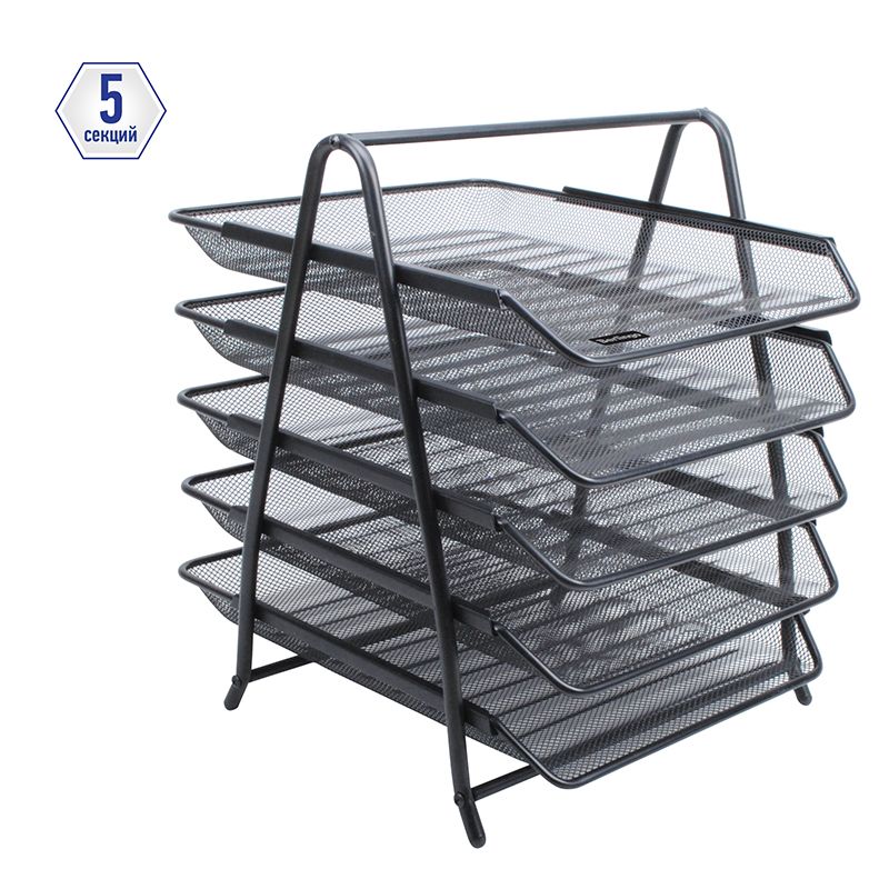 Лоток для бумаг горизонтальный Berlingo "Steel&Style", 5 секций, металл, черный