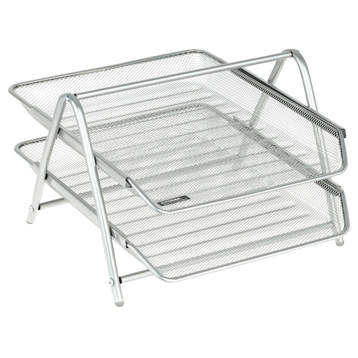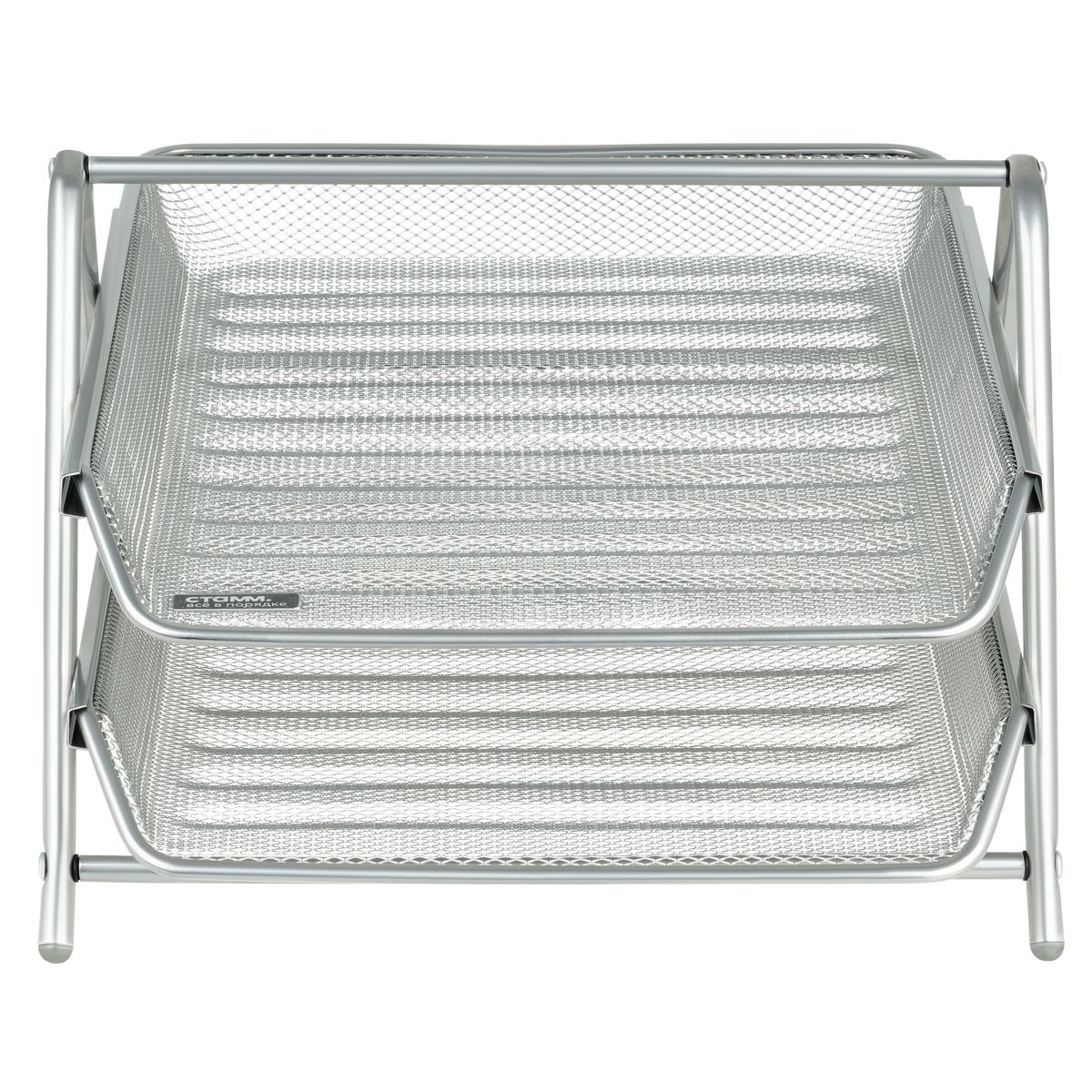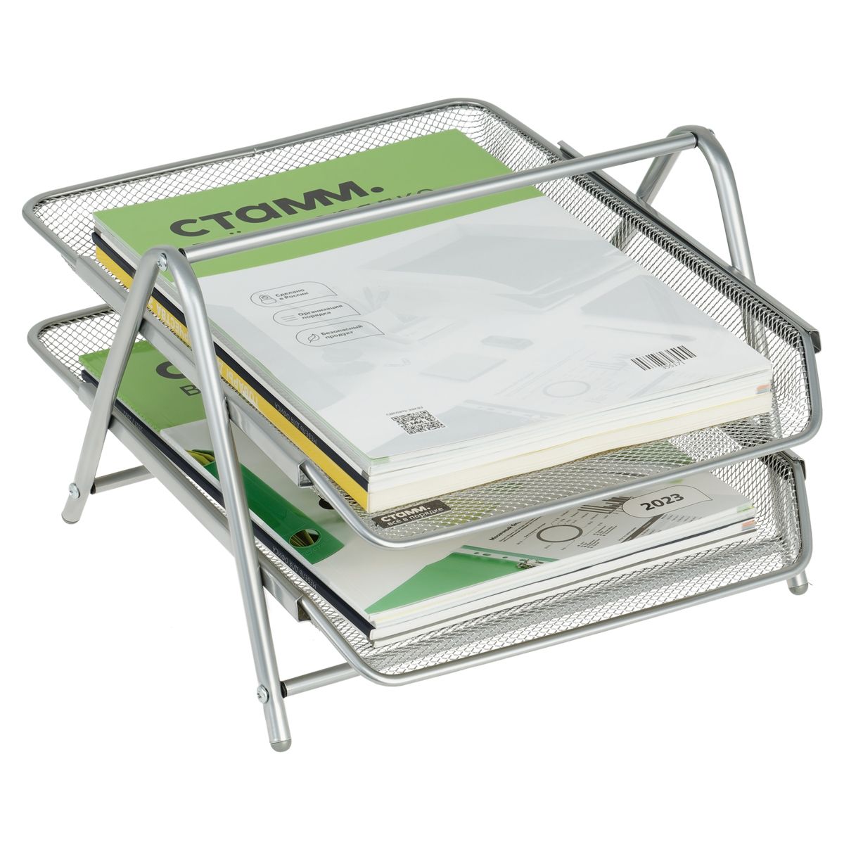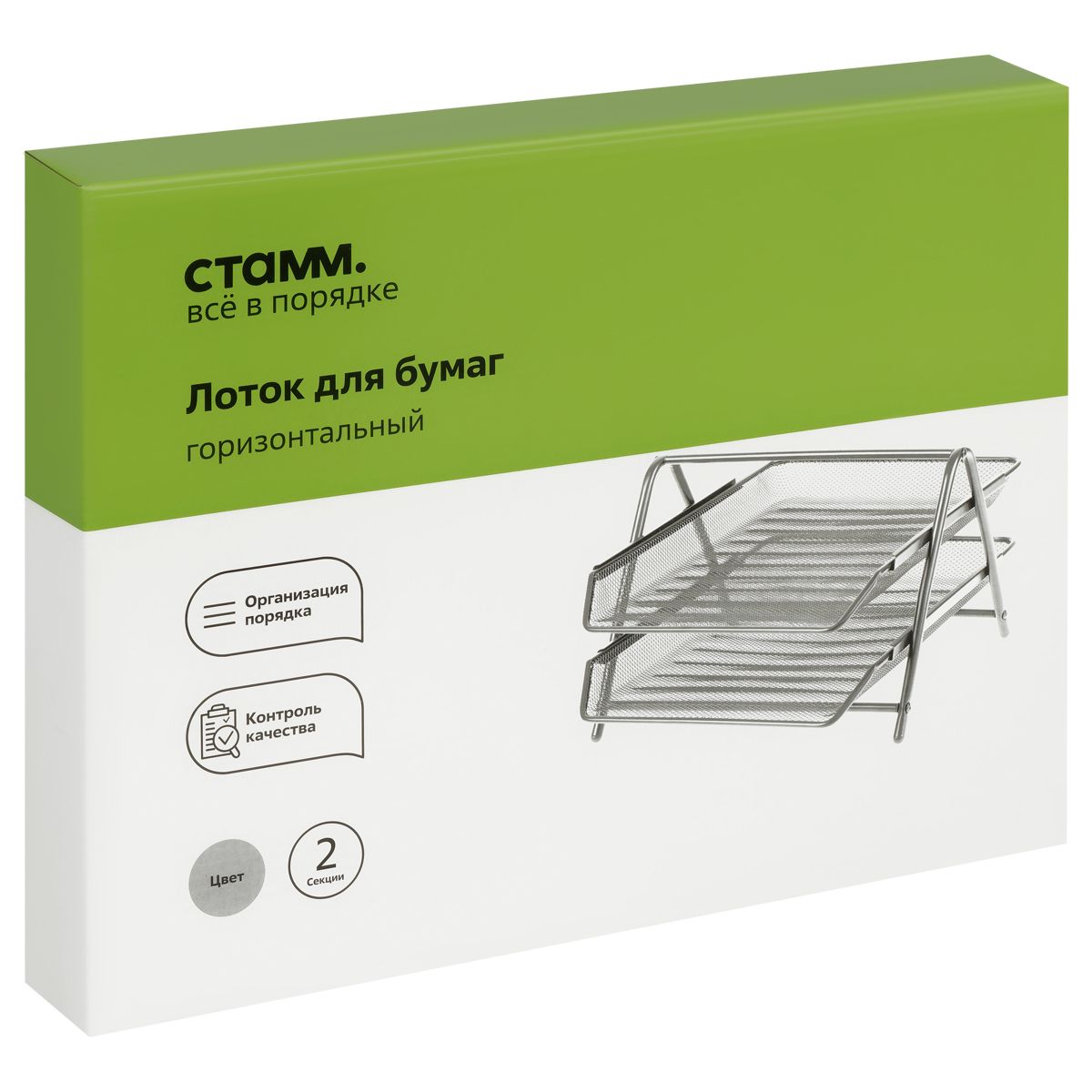 Лоток для бумаг горизонтальный СТАММ, 2 секции, металл, серебристый