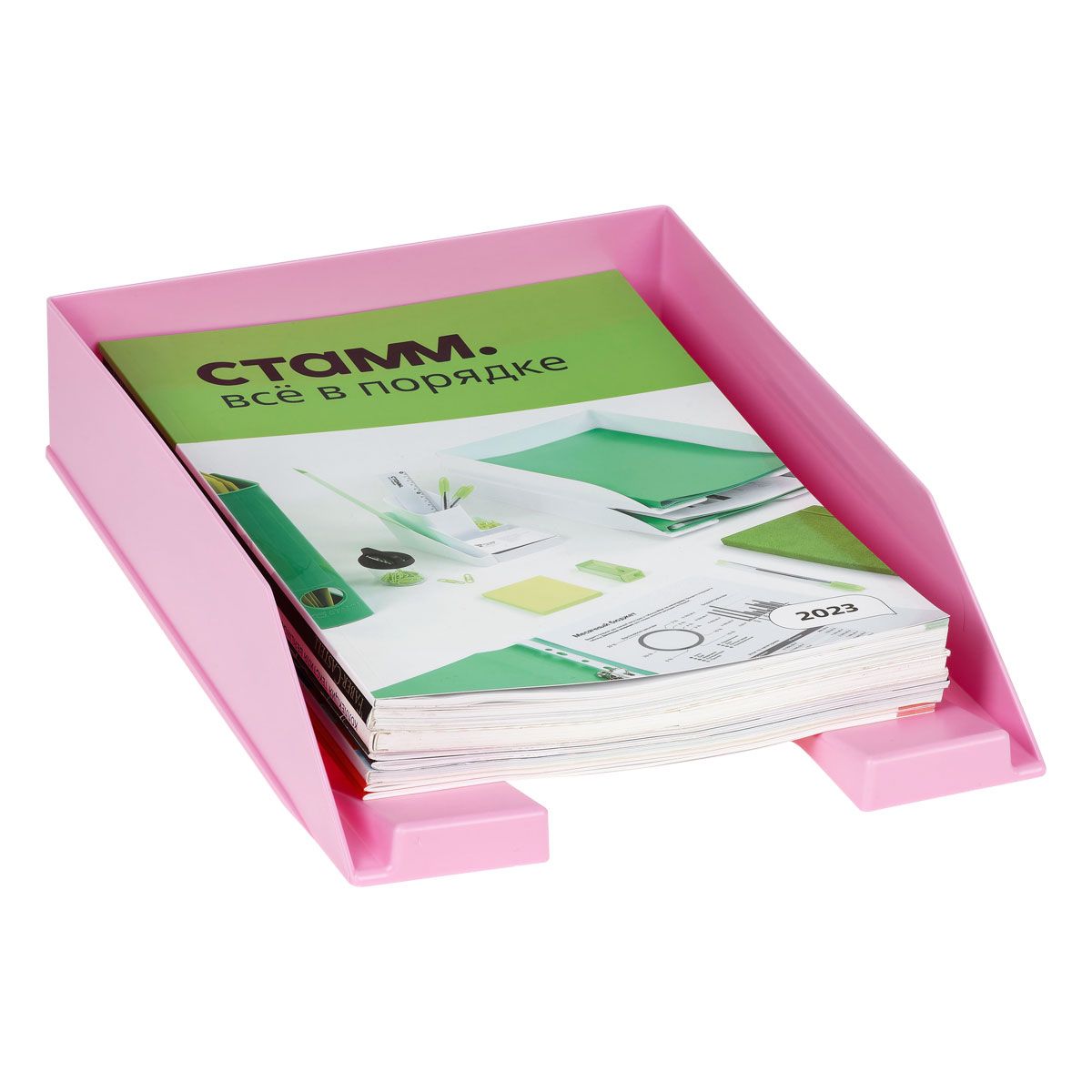 Лоток для бумаг горизонтальный СТАММ "Фаворит", розовый