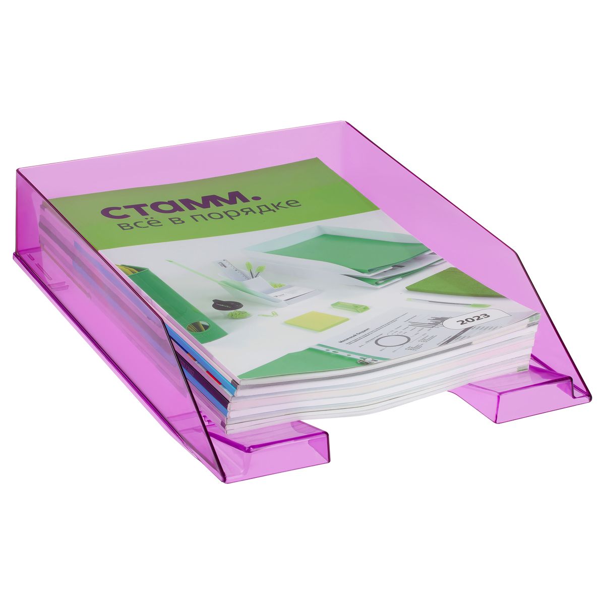 Лоток для бумаг горизонтальный СТАММ "Фаворит", тонированный фиолетовый