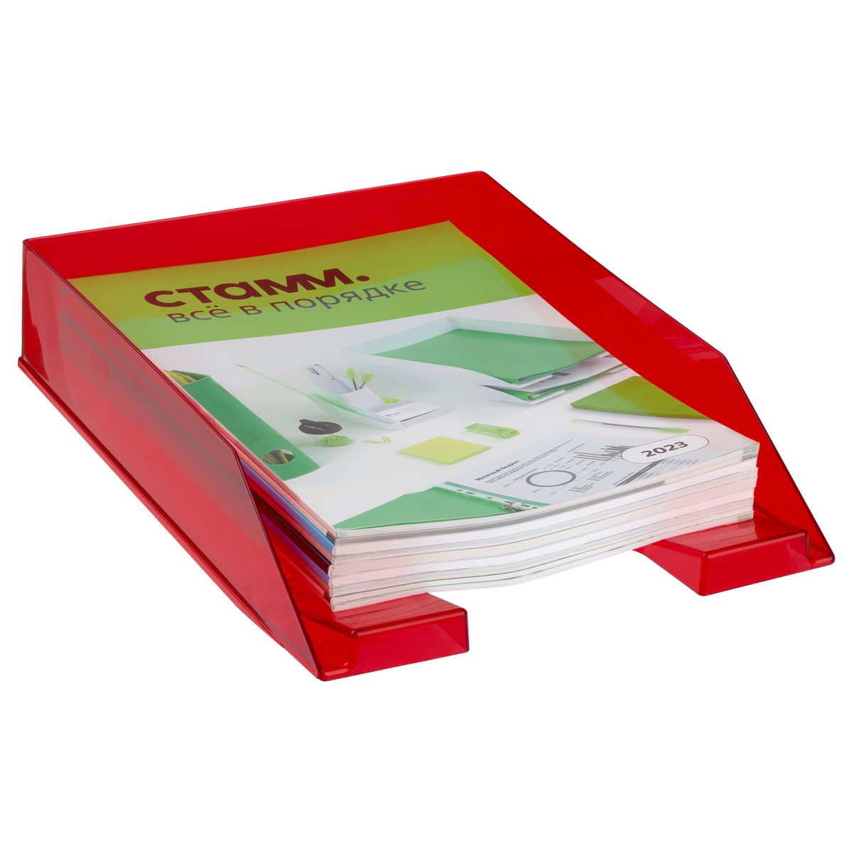Лоток для бумаг горизонтальный СТАММ "Фаворит", тонированный красный