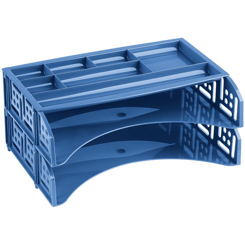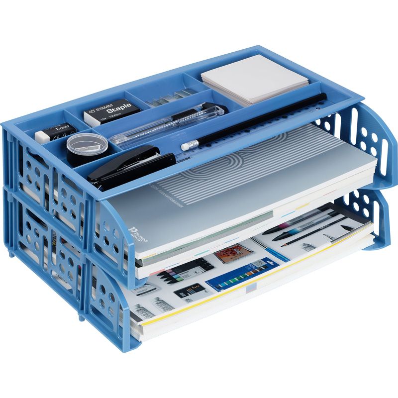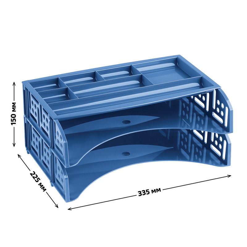 Лоток для бумаг горизонтальный СТАММ "Field", набор 2шт. + органайзер, голубой Berlin