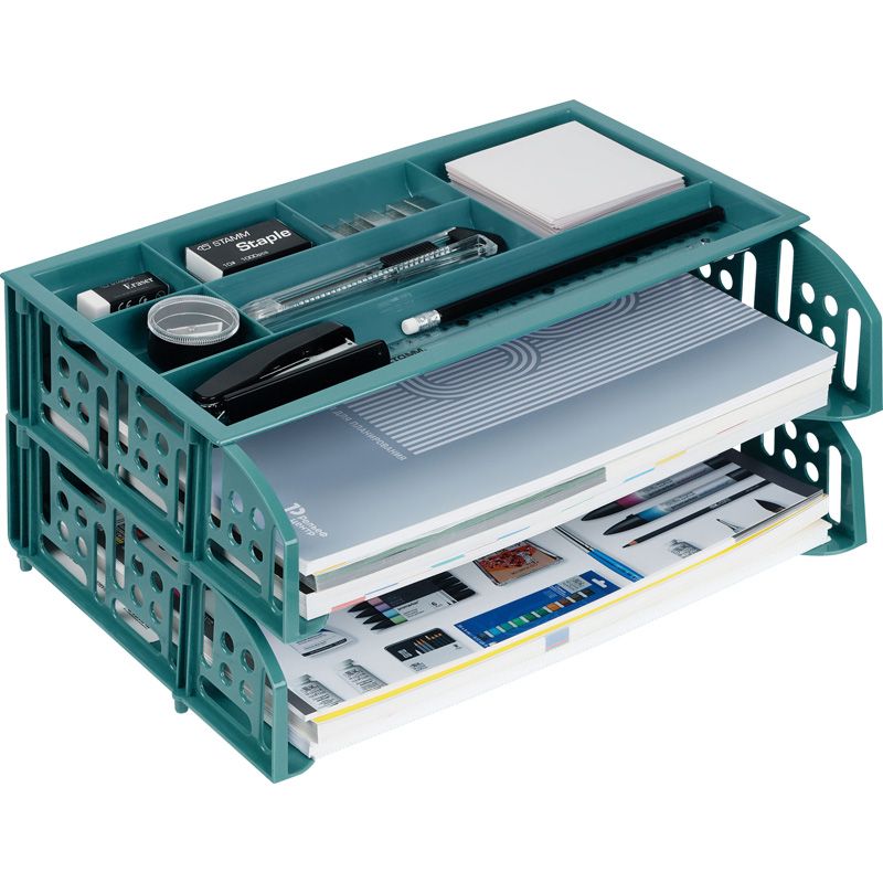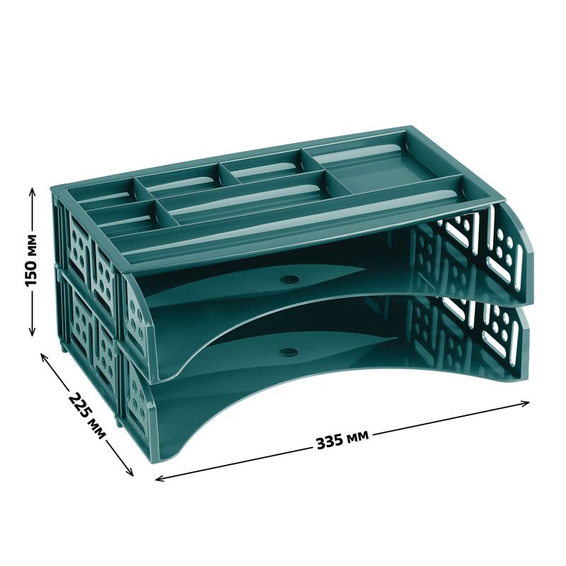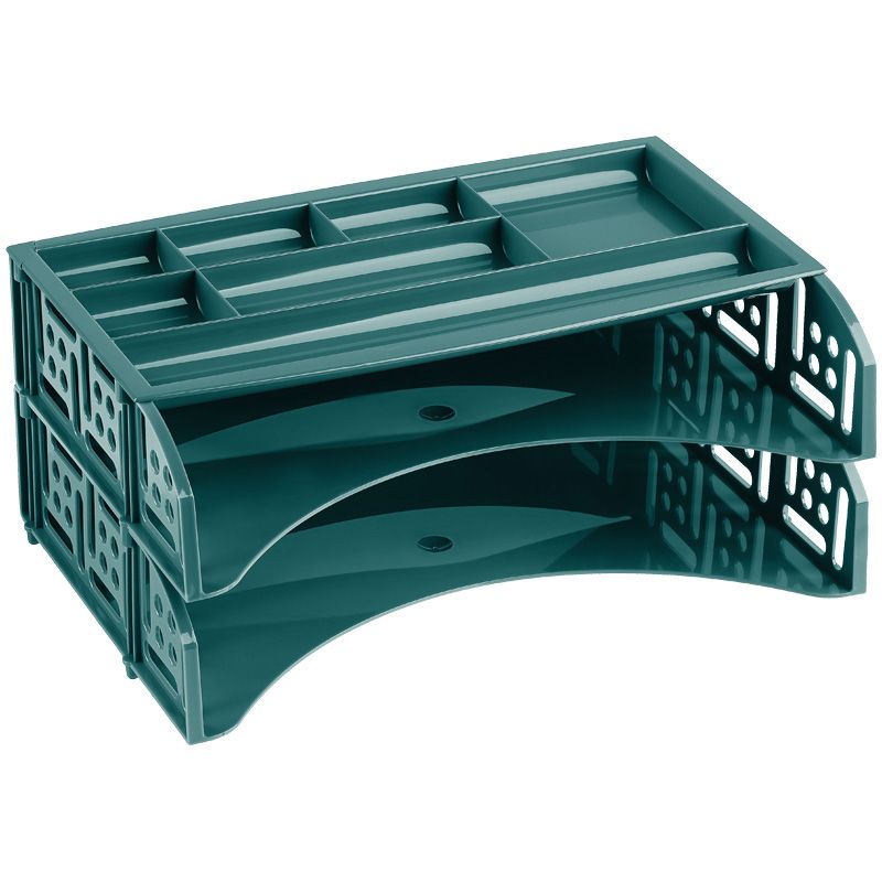Лоток для бумаг горизонтальный СТАММ "Field", набор 2шт. + органайзер, зеленый NY