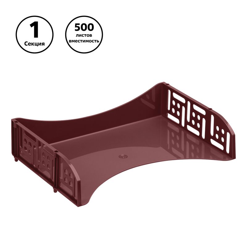 Лоток для бумаг горизонтальный СТАММ "Field", широкая загрузка, бордовый Agra